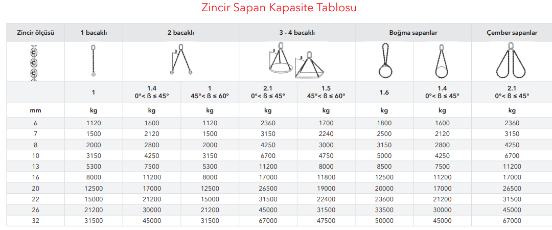 Farklı zincir kalınlıklarıyla çeşitli taşıma kapasitelerine sahiptir.