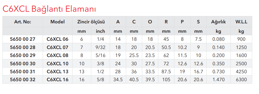 C6XCL Paslanmaz Bağlantı Elemanı (G6), zincir ve kaldırma ekipmanlarını güvenli bir şekilde birleştirmek için tasarlanmış yüksek kaliteli bir bağlantı parçasıdır.