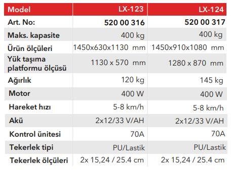 LX-123 Akülü Taşıma Arabası, kompakt tasarımı sayesinde dar alanlarda bile yüksek manevra kabiliyeti sunar.