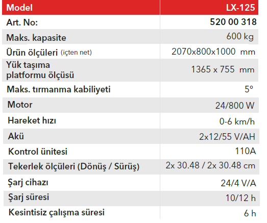LX-125 Vagon Tip Taşıma Arabası, 600 kg’a kadar yük taşıma kapasitesi ile ağır hizmet sınıfında üstün performans sunar.