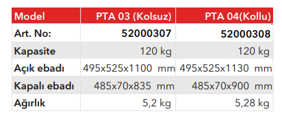 65 kg ve 120 kg iki farklı kapasite seçenekleri ile iş gücünüze kolaylık sağlar.