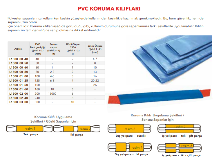 Sapan Koruma Kılıfları, polyester sapanın kullanım koşullarına göre farklı formlarda uygulanabilir. Sapan genişliğine tam uyum sağlayan bu kılıflar, sapanı aşınma, kesilme ve yıpranmaya karşı etkin şekilde korur. Yük kaldırma sırasında sürtünmeye ve kenar baskısına maruz kalan noktaları izole eder, operatör ve yük güvenliğini artırır.