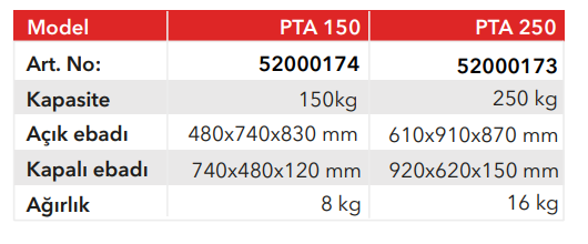 PTA150 Paket Taşıma Arabası, 150 kg taşıma kapasitesiyle depo, kargo merkezi ve mağaza içi lojistik operasyonları için pratik bir çözüm sunar.